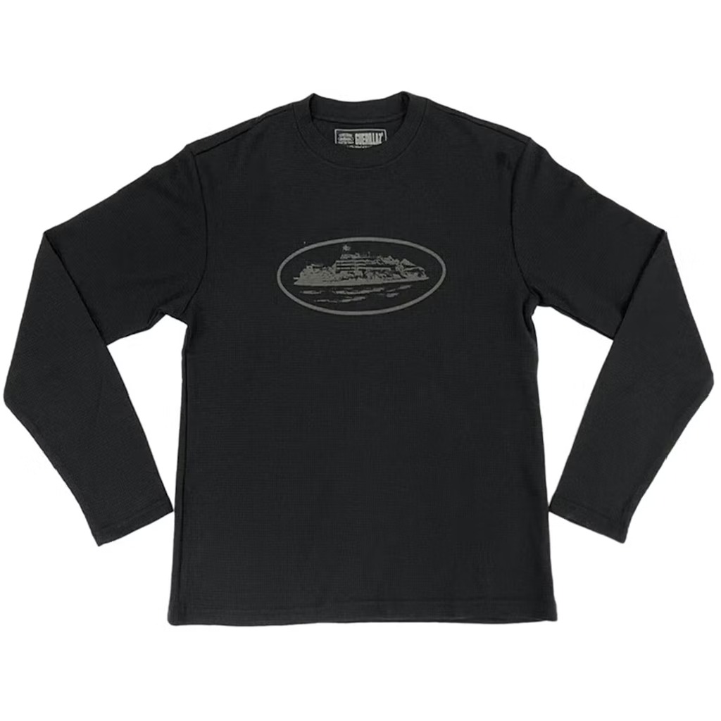 Corteiz Alcatraz Waffle Long Sleeve T-shirt in Triple Black