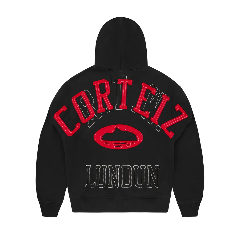 • Premium black zip hoodie with Lundun stitch design